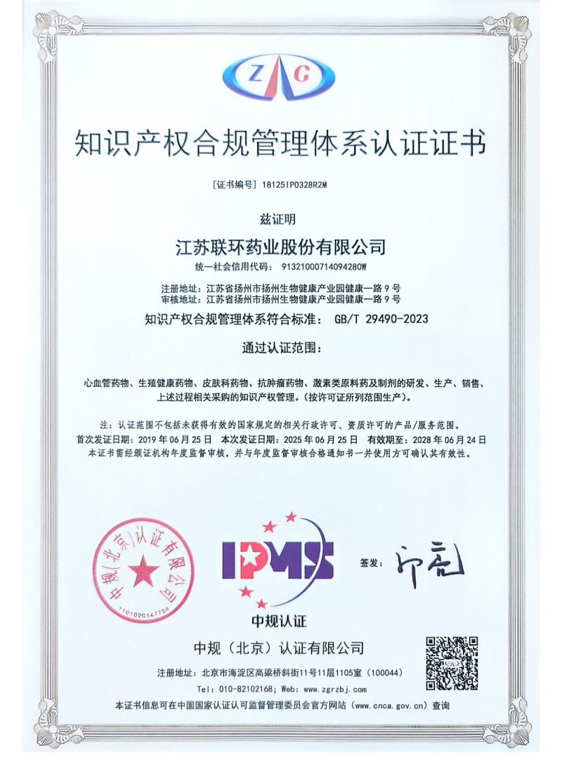 CopyRight ©2025 版權所有 江蘇聯環藥業股份有限公司 電話:0514-82778972 地址:揚州生物健康產業園健康一路9號